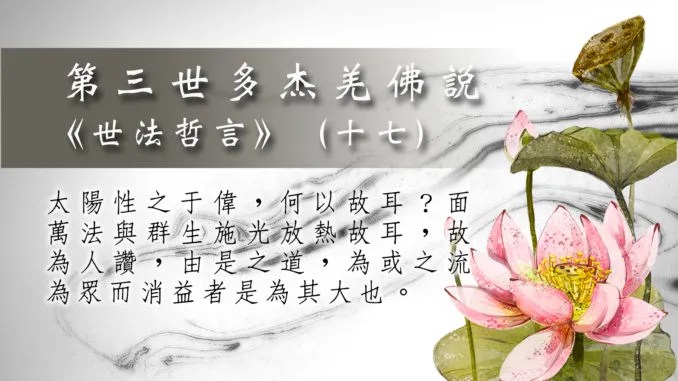 太陽性之于偉,何以故耳?面萬法與群生施光放熱故耳…more