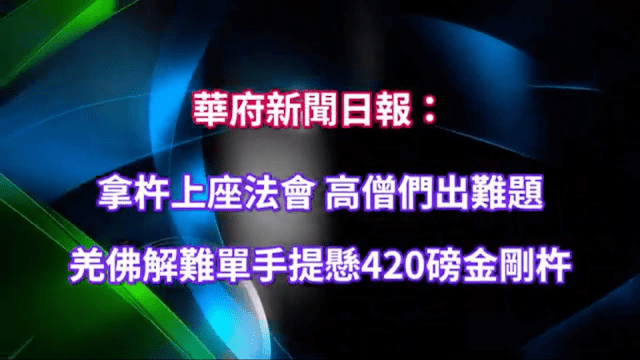 - 華府新聞日報:拿杵上座法會 高僧們出難題 羌佛解難單手提懸420磅金剛杵
