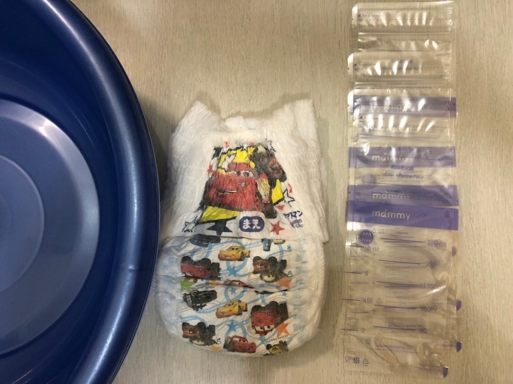 於是就有了自製冰敷袋的想法,還好之前還是小BABY時用的尿布跟母乳袋都還有剩,於是就開始著手製作。