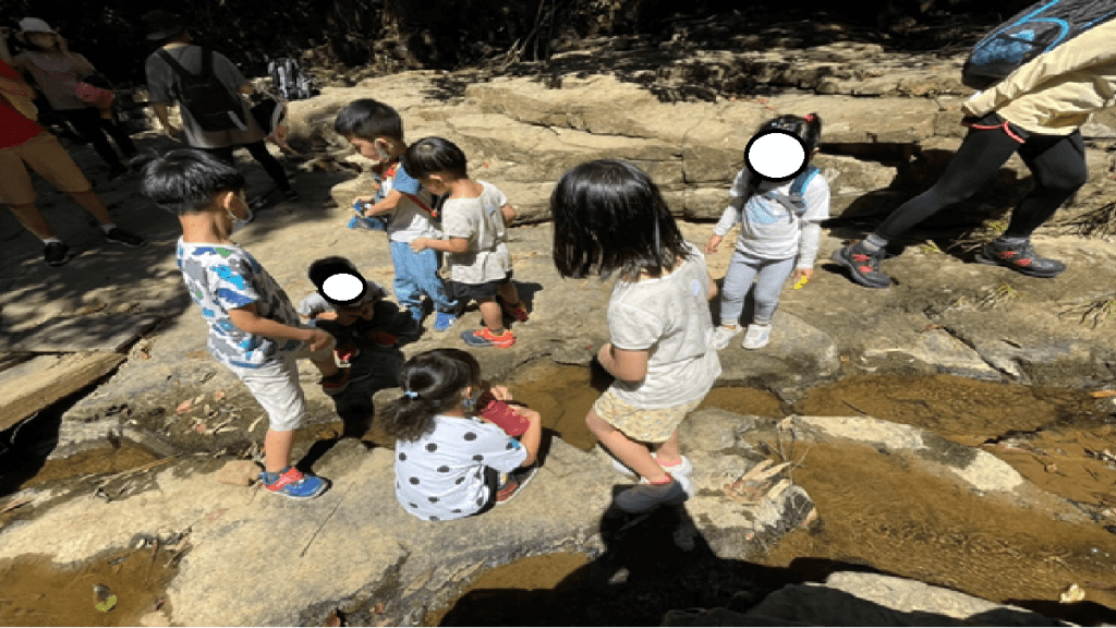 終於走到水上平台,小夥伴們開心地吃起零食,小小休息一下