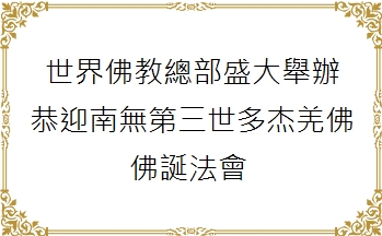 文章來源 : 世界佛教總部盛大舉辦 恭迎南無第三世多杰羌佛佛誕法會