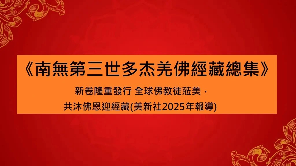 《南無第三世多杰羌佛經藏總集》新卷隆重發行 全球佛教徒蒞美,共沐佛恩迎經藏(美新社2025年報導)